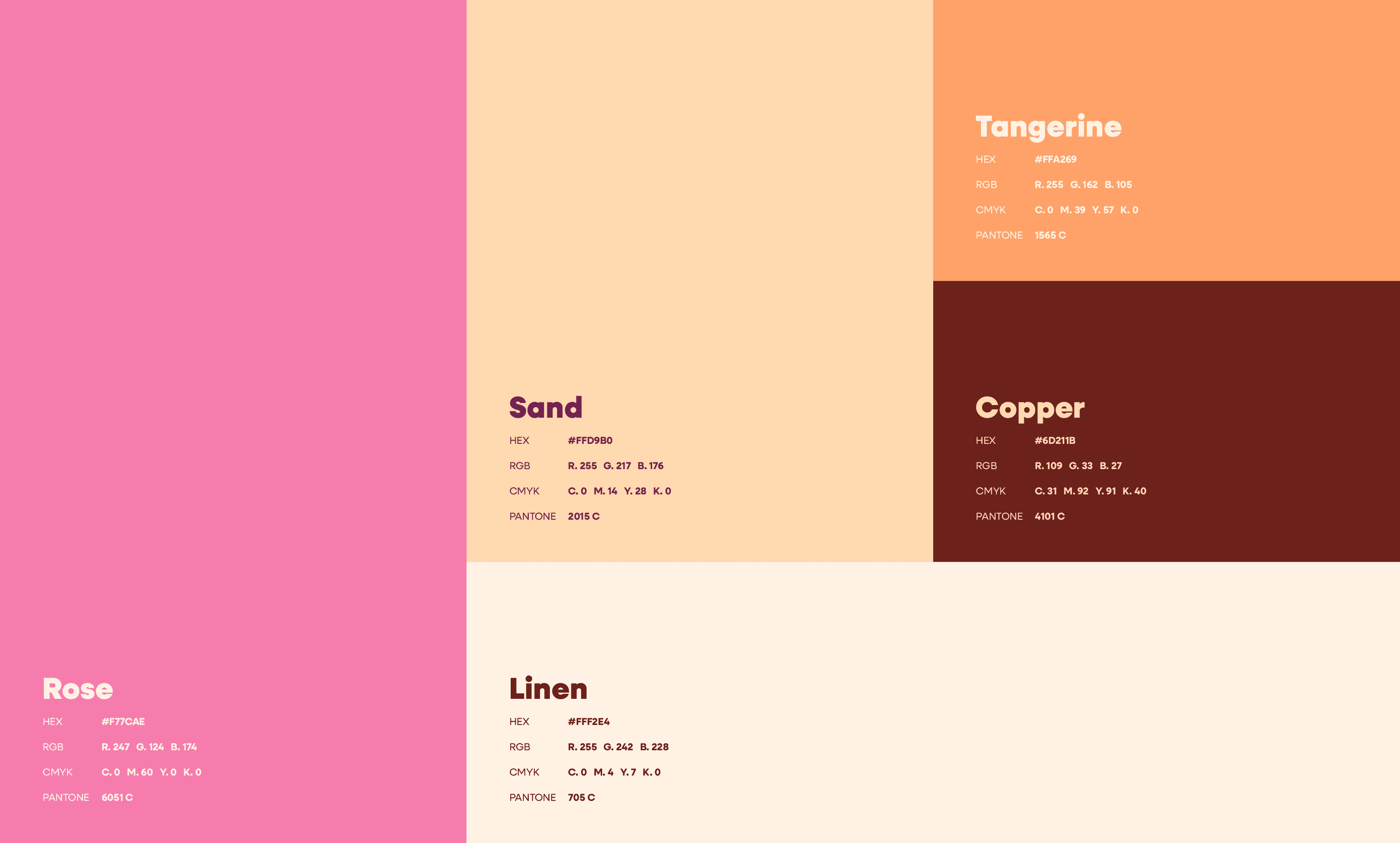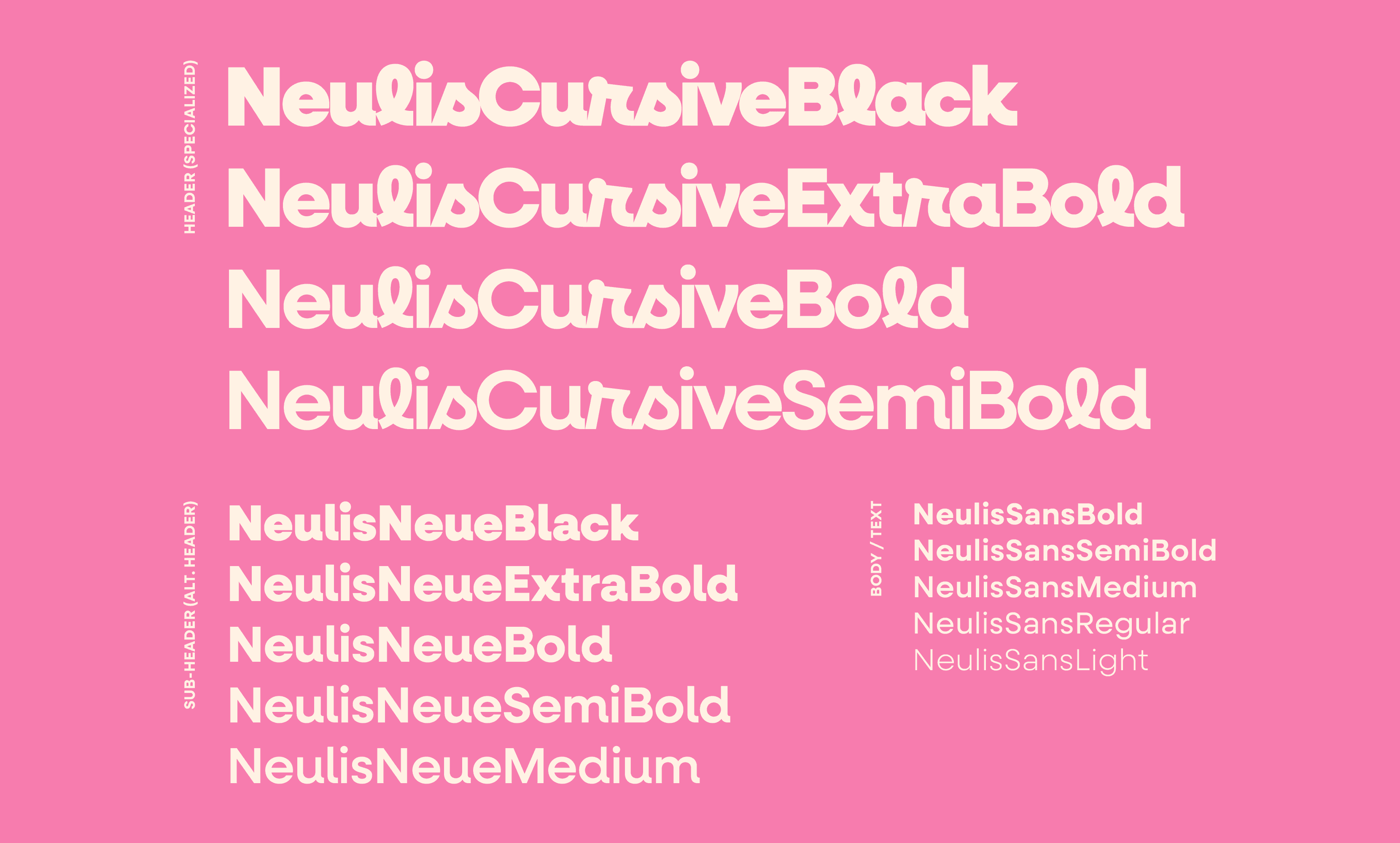To achieve this, I chose a decorative header font that immediately grabs attention, speaking to KatKat Beauty's loyalists and helping to attract new customers. Paired with its Neulis flankers, this font system creates an energetic and personable atmosphere that matches what the KatKat Beauty team provides to their clients everyday. To compliment the typography, I built a playful, warm color palette thats fosters a welcoming feeling, as another one of their goals was to strengthen relationships with their existing wholesale partners. The resulting system is modern, scalable, and designed to be an anchor for sustainability.