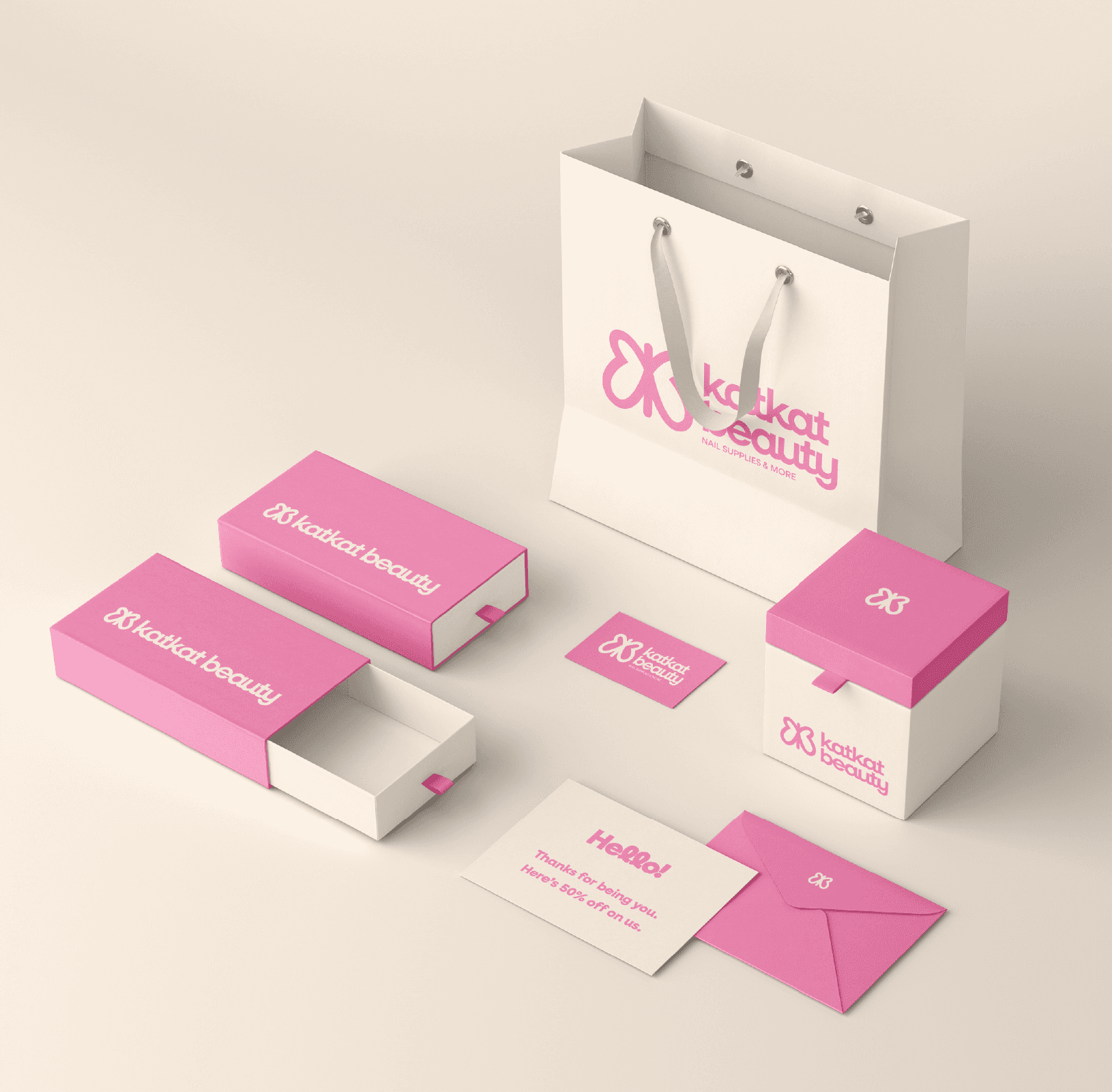 The primary goal of the rebrand was to transition Elufa Trading into a more cohesive, consumer-facing brand under KatKat Beauty, giving them a stronger presence in the nail care industry. The business was operating with a functional identity, but lacked a distinctive brand system that could support sustainable growth and recognition in the future. My focus was to create a new identity that felt modern and approachable, but still playful, all while reinforcing key brand values like quality and reliability. The rebrand also needed to support a future product line expansion, equipped with a flexible system that could scale across different packaging and digital touchpoints.